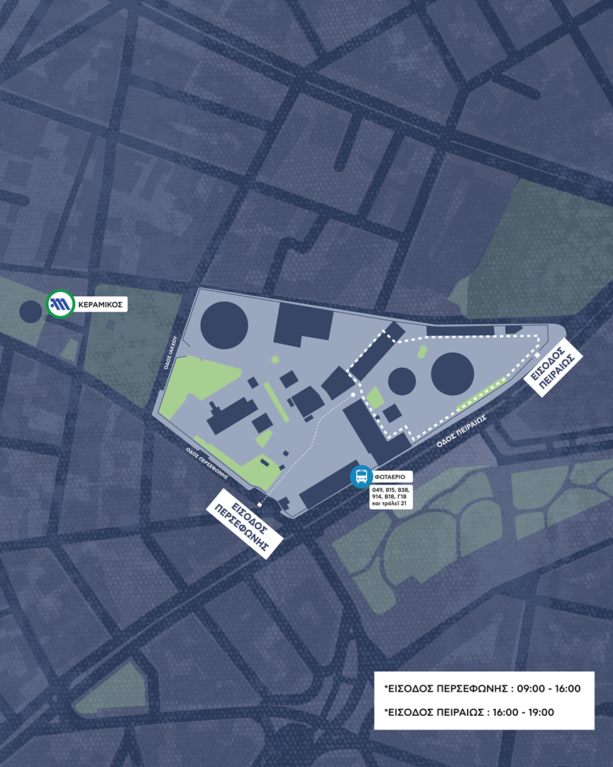Μετά τις 16:00, η πρόσβαση είναι από την οδό Πειραιώς.